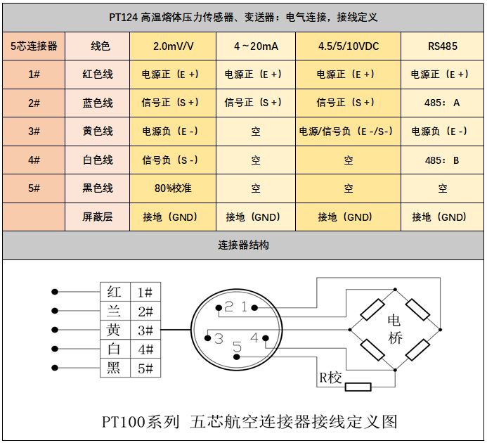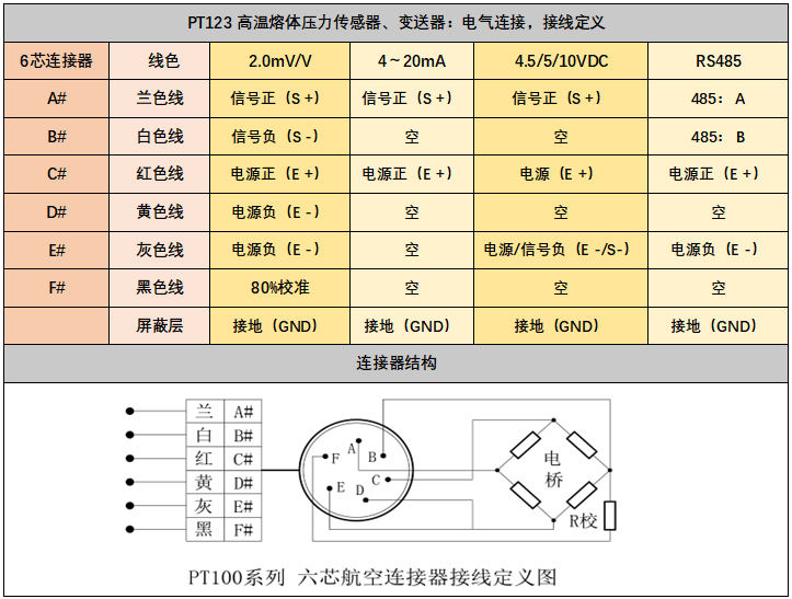 六、高溫熔體壓力傳感器,熔體壓力變送器 PT124/PT123 信號輸出: